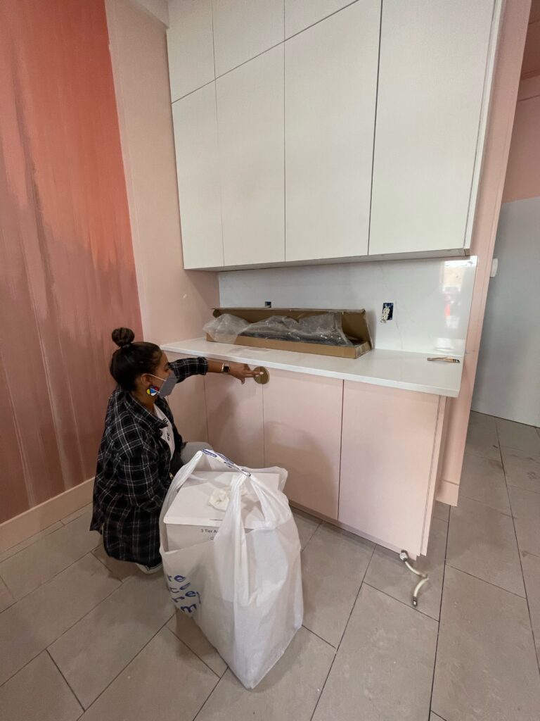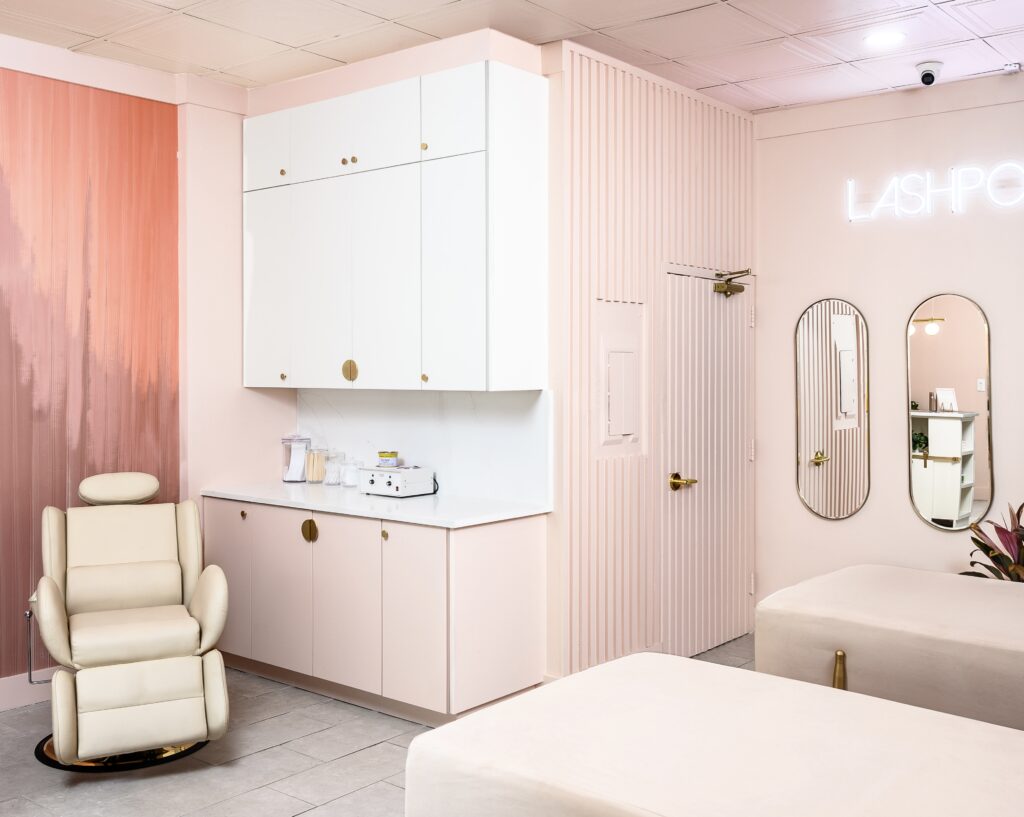 Designer Amelia Knox had one client directive when redesigning the LashPop beauty salon: all pink everything.