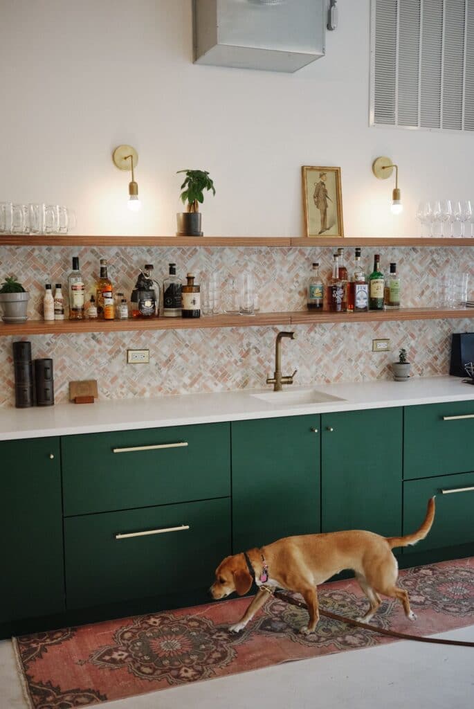 Green calls in imagery of nature, a refreshing, peaceful color that makes it the ideal choice for any room, espically the kitchen. It also complements a variety of palettes and design styles. For Gizel Bahlman, green Shaker-style fronts were just what was needed to make her Arizona kitchen makeover shine. When the Bahlmans first researched cabinetry quotes, they were in shock at the cost, and thus chose to work with IKEA and Semihandmade to not only save, but get a kitchen that was both functional and stylish. Today, Semihandmade’s DIY Shaker fronts in Farrow & Ball’s Pigeon add life back to the home. “I wanted a little pop of color…but not make it closed-in because the last thing I wanted to do was make this space feel smaller,” she says.