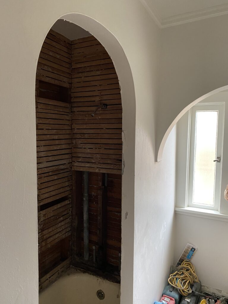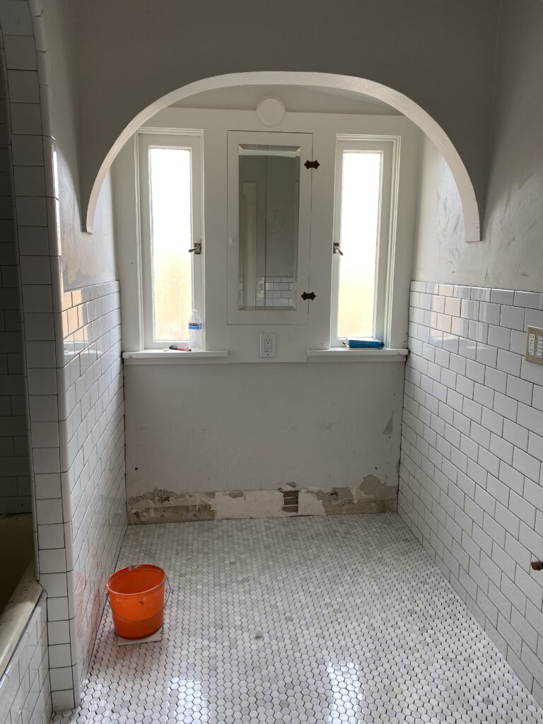 While it was a challenge to tile the shower arch since it wasn’t level or plumb, Gerlach is happy to have a house with these vintage curves. “I do love the character,” she says. “These elements like the arches in the bathroom and the built-ins you just can’t find in a new-build. It’s fun to embrace these old features.”