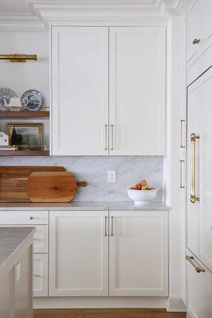 The lower cupboards are topped with Carrara marble, a notoriously fragile material that Mary Lauren hesitated to pick. “It’s definitely a high-maintenance stone, but I would choose it again,” she admits. “It has marks and scratches and, to me, those are just signs of life. They’ve become a part of it.”