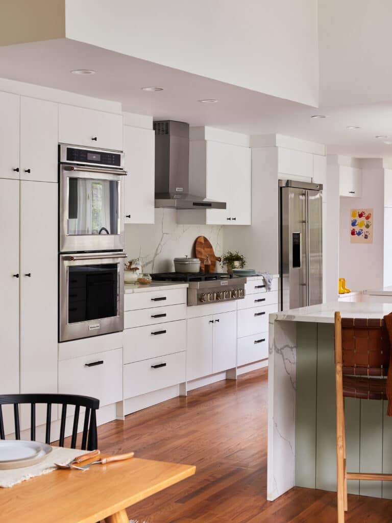 “Our house was built in the 50s, and our kitchen reflected a country style,” Pugliese says. “The cabinets were all wood, and you had to use your full body weight to pull out a drawer. We have two small children, so having a functional space was critical for us,” she adds.