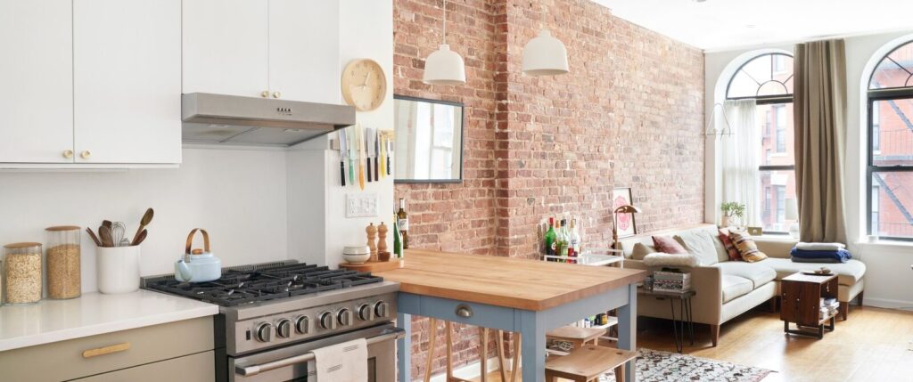 While the tight space played host to countless friend gatherings and dinner parties for the better part of a decade, it sported dated black appliances, brown faux-marble countertops, and orange cabinetry that screamed the 1990s. “We were always annoyed by it, but it wasn’t terrible,” says Shoko, laughing. “It was your standard, cheap kitchen, but it did its job.”