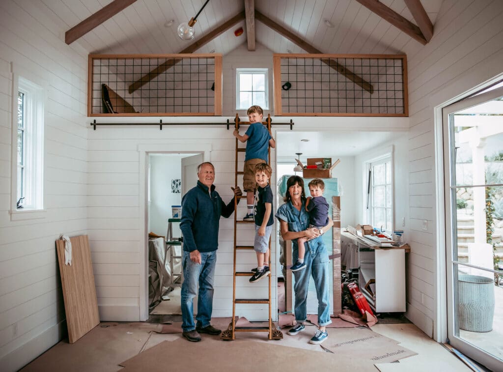 Family and friends can also enjoy the gray Restoration Hardware pull-out sofa or a low-slung twin bed in the cozy loft, which is accessed by an antique library ladder Ellis found on eBay. “It’s from a steel factory in Youngstown, Ohio, which is where my mother-in-law is from,” she shares. “Her family had a steel mill, so we like to pretend it’s from that particular steel mill.”